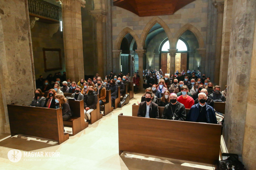„Összegyűltünk, hogy együtt énekeljünk az Úrnak, és testvéri közösségben legyen részünk” – fogadta Dejcsics Konrád OSB, a főapátság kulturális igazgatója, a Bencés Kiadó vezetője az egybegyűlteket a főapátság vetítőtermében.