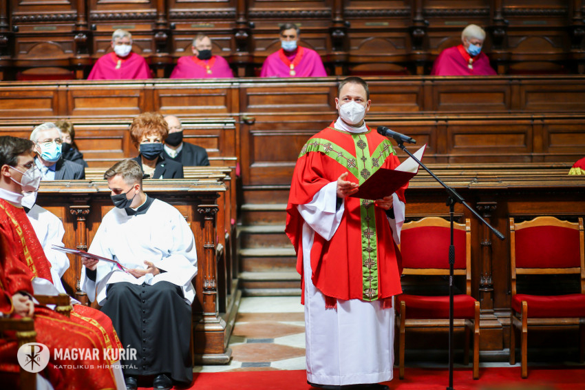 Mohos Gábor esztergom-budapesti segédpüspökkel koncelebráltak a székesegyházi káptalan kanonokjai, valamint a díjazottak jelenlegi vagy korábbi plébánosai.